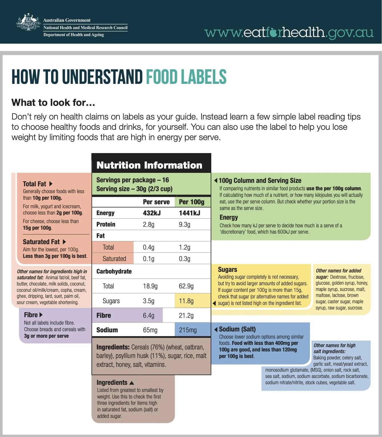 The less you eat packaged foods the better, however we've shared a simple guide from the Australian Government explaining how to read nutrition labels for those moments you are eating packaged food.